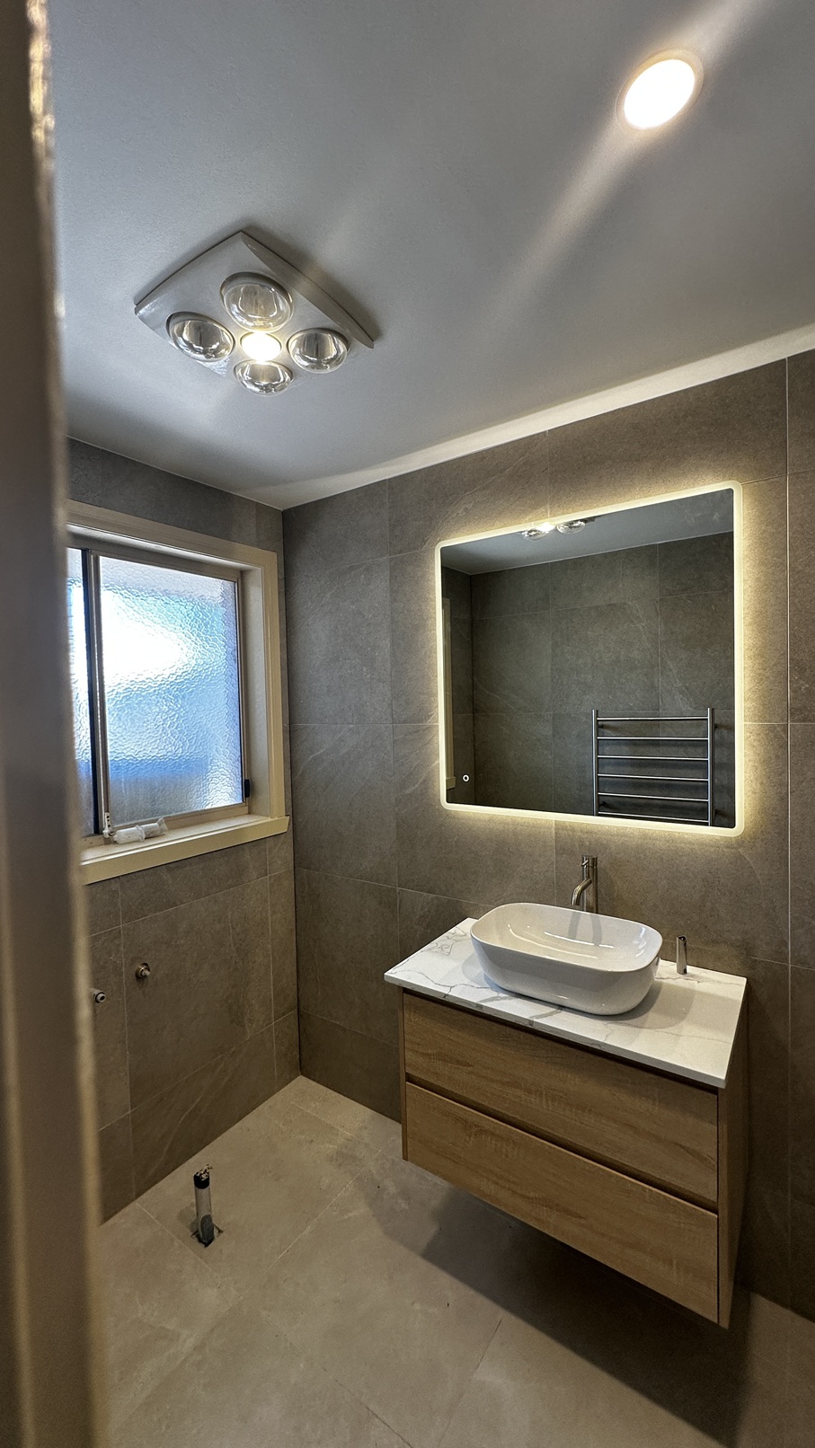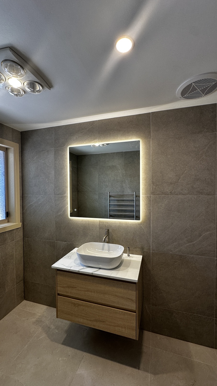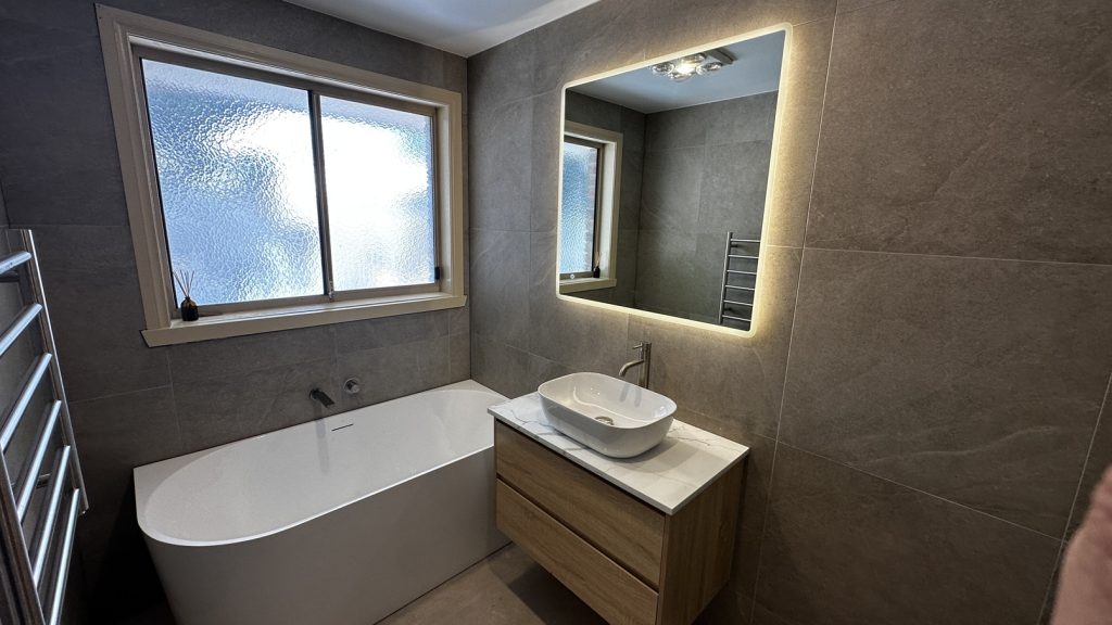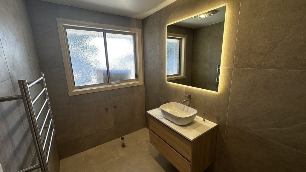 Stylish Bathroom Renovation – Contemporary tiling, vanities, and high-end fittings to enhance comfort and elegance.