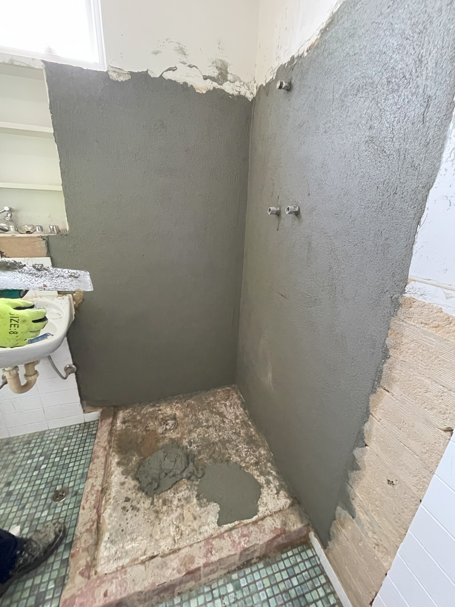 This 5-day bathroom renovation required advanced waterproofing solutions to ensure long-term durability and protection against moisture damage. The back wall presented structural challenges, which we overcame by using a precision-rendering method that created a water-resistant, long-lasting base for the bathroom. This approach not only improved the structural integrity but also enhanced the moisture resistance of the entire space.